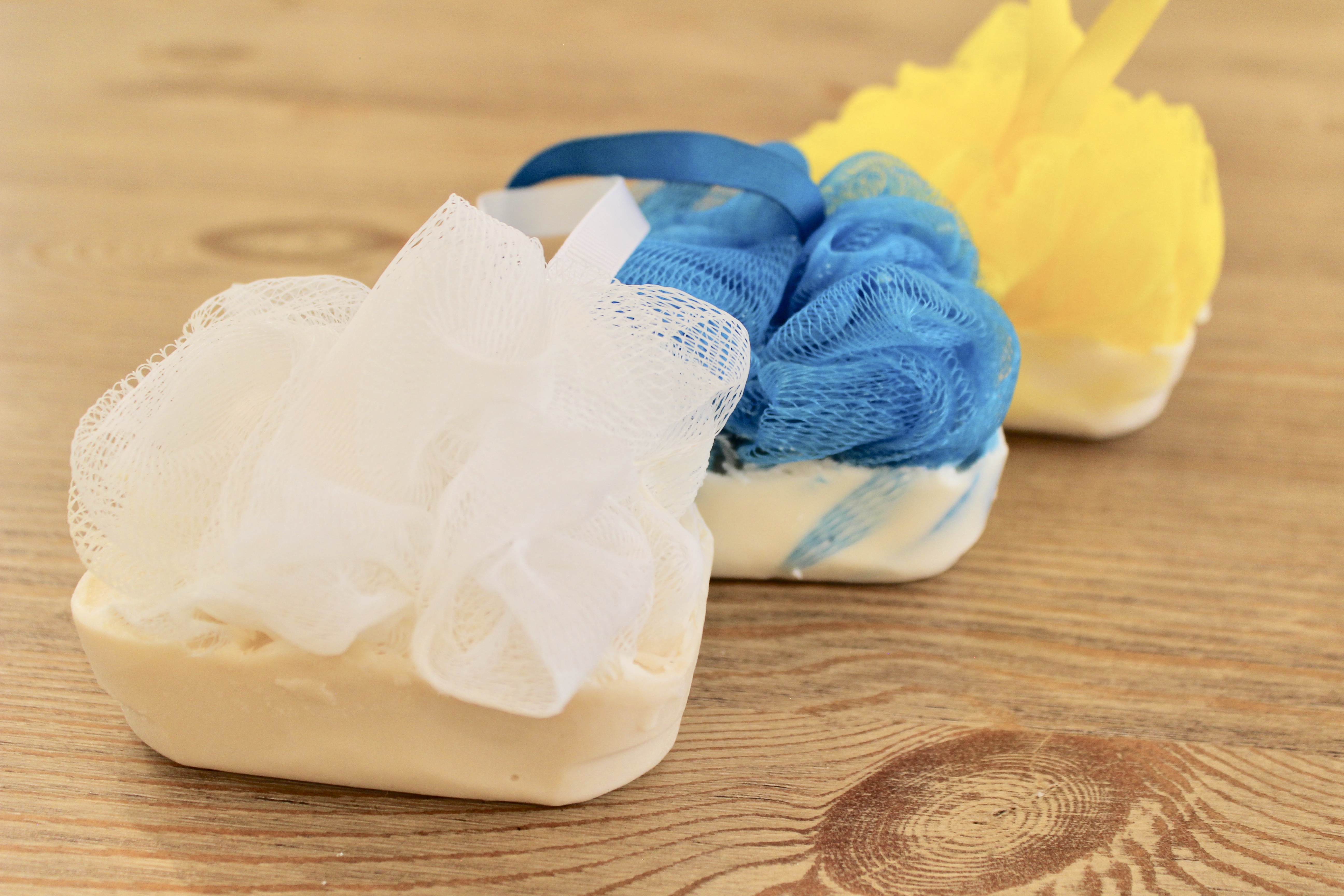 Our Goat’s Milk Soap Bars are very moisturizing and create a rich and creamy lather. The Goat’s Milk Bars with Puffy have the added benefit of a mesh puffy embedded in the soap to make washing even easier.
